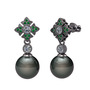 Siyah inci, pırlanta ve yeşil kuvars 925 ayar siyah rodyum kaplama gümüş küpe (0.44 karat)