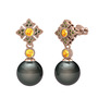 Siyah inci, sitrin ve peridot 18 ayar rose altın küpe