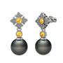 Siyah inci, sitrin ve pırlanta 925 ayar gümüş küpe (0.2112 karat)