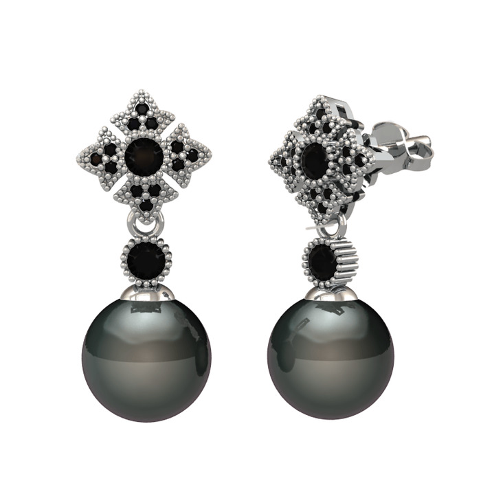 Siyah inci ve siyah zirkon 18 ayar beyaz altın küpe