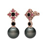 Siyah inci, siyah zirkon ve rodolit garnet 14 ayar rose altın küpe