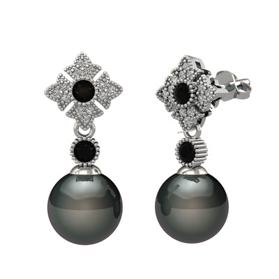 Siyah inci, siyah zirkon ve swarovski 925 ayar gümüş küpe