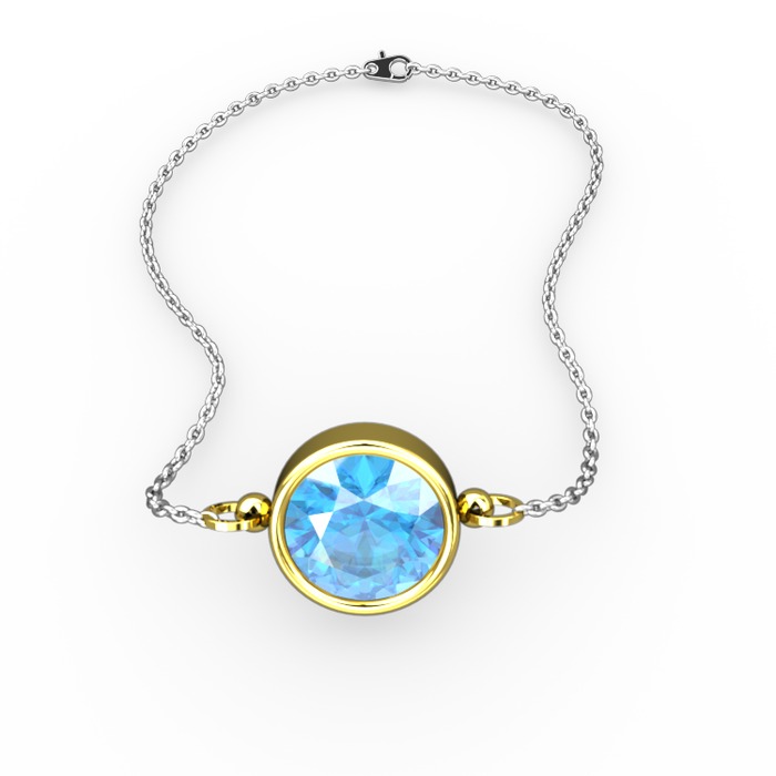 Akuamarin 8 ayar altın bileklik (40 cm beyaz altın rolo zincir)