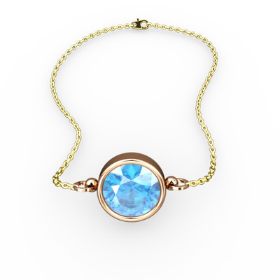 Akuamarin 8 ayar rose altın bileklik (40 cm altın rolo zincir)