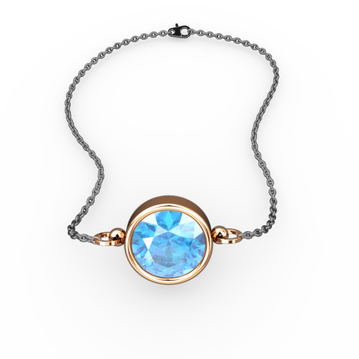 Akuamarin 8 ayar rose altın bileklik (40 cm gümüş rolo zincir)