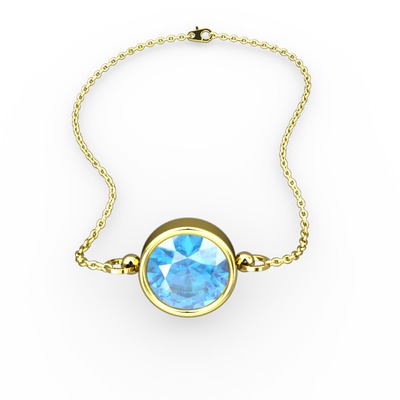 Akuamarin 925 ayar altın kaplama gümüş bileklik (40 cm altın rolo zincir)