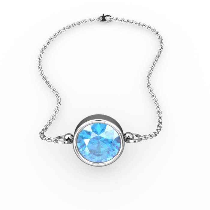 Akuamarin 925 ayar gümüş bileklik (40 cm gümüş rolo zincir)