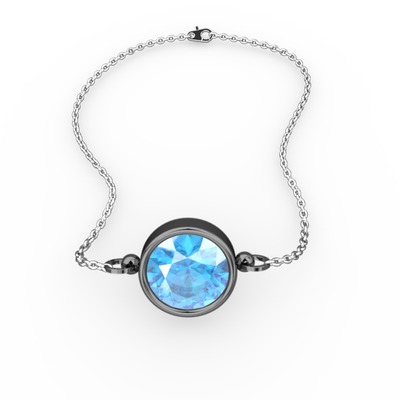 Akuamarin 925 ayar siyah rodyum kaplama gümüş bileklik (40 cm beyaz altın rolo zincir)