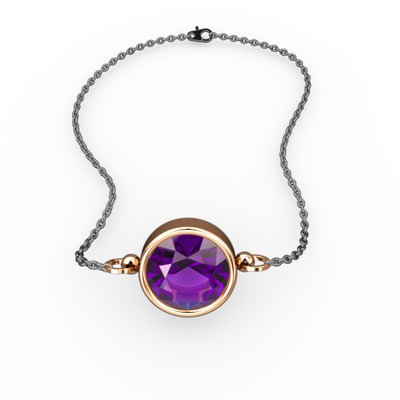 Ametist 14 ayar rose altın bileklik (40 cm gümüş rolo zincir)