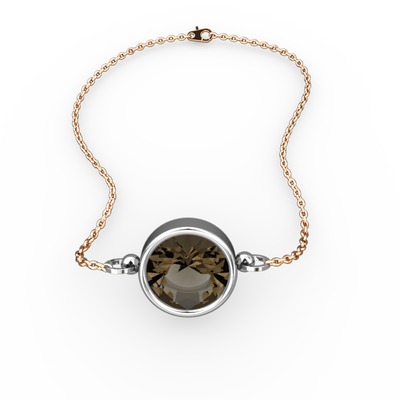 Dumanlı kuvars 14 ayar beyaz altın bileklik (40 cm rose altın rolo zincir)