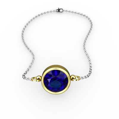 Lab safir 18 ayar altın bileklik (40 cm gümüş rolo zincir)