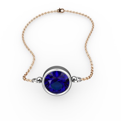 Lab safir 18 ayar beyaz altın bileklik (40 cm rose altın rolo zincir)