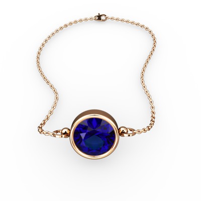 Lab safir 925 ayar rose altın kaplama gümüş bileklik (40 cm rose altın rolo zincir)