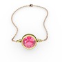 Pembe kuvars 14 ayar altın bileklik (40 cm rose altın rolo zincir)