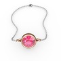 Pembe kuvars 18 ayar rose altın bileklik (40 cm gümüş rolo zincir)