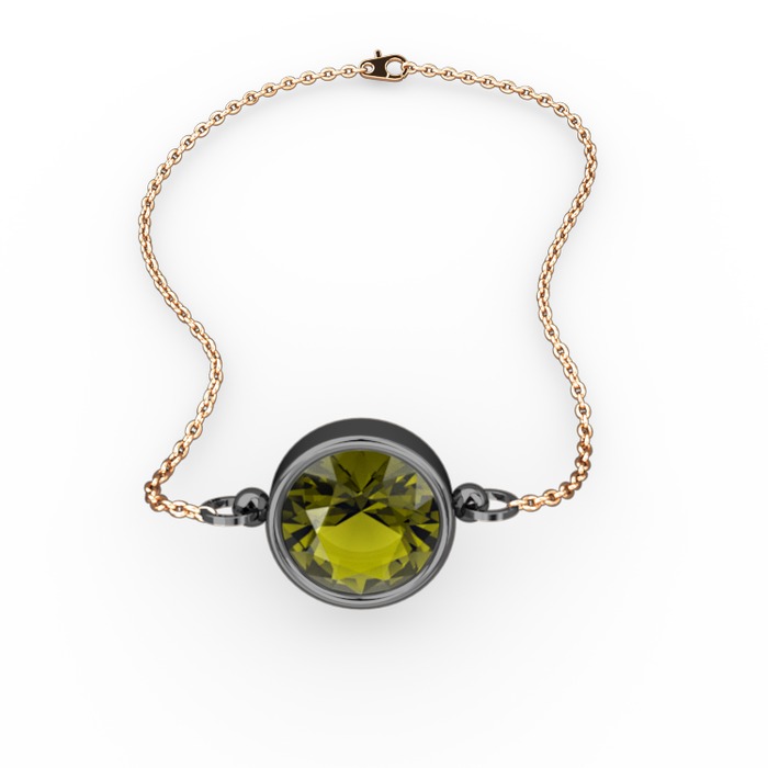 Peridot 925 ayar siyah rodyum kaplama gümüş bileklik (40 cm rose altın rolo zincir)