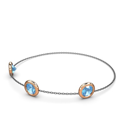 Akuamarin 14 ayar rose altın bilezik (40 cm gümüş rolo zincir)