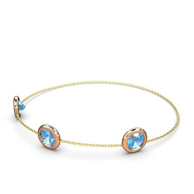 Akuamarin 18 ayar rose altın bilezik (40 cm gümüş rolo zincir)