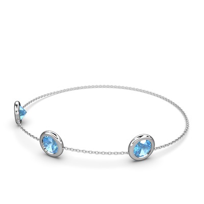 Akuamarin 8 ayar beyaz altın bilezik (40 cm beyaz altın rolo zincir)