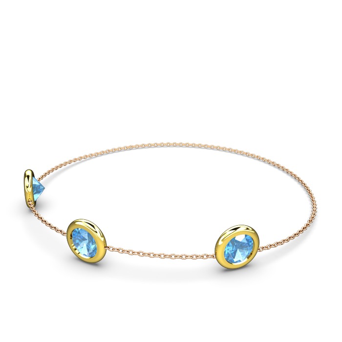 Akuamarin 925 ayar altın kaplama gümüş bilezik (40 cm gümüş rolo zincir)
