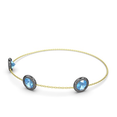 Akuamarin 925 ayar siyah rodyum kaplama gümüş bilezik (40 cm gümüş rolo zincir)