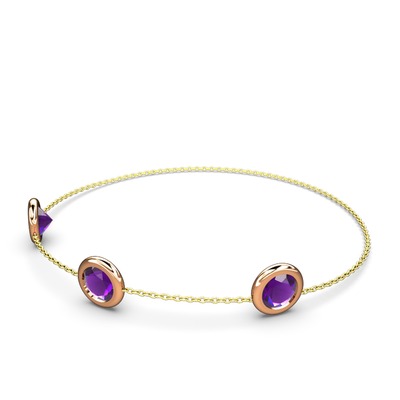 Ametist 14 ayar rose altın bilezik (40 cm gümüş rolo zincir)