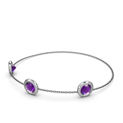 Ametist 18 ayar beyaz altın bilezik (40 cm gümüş rolo zincir)