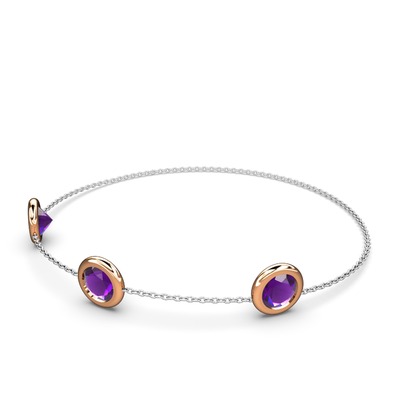 Ametist 8 ayar rose altın bilezik (40 cm beyaz altın rolo zincir)