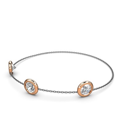 Beyaz zirkon 8 ayar rose altın bilezik (40 cm gümüş rolo zincir)