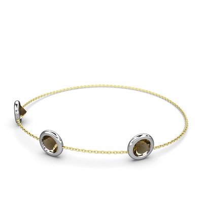 Dumanlı kuvars 14 ayar beyaz altın bilezik (40 cm altın rolo zincir)