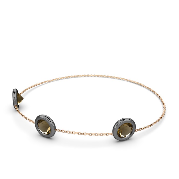 Dumanlı kuvars 925 ayar siyah rodyum kaplama gümüş bilezik (40 cm rose altın rolo zincir)