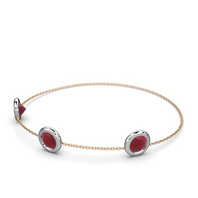 Kök yakut 8 ayar beyaz altın bilezik (40 cm rose altın rolo zincir)