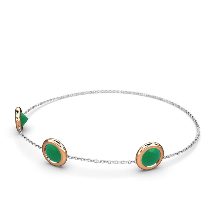 Kök zümrüt 14 ayar rose altın bilezik (40 cm beyaz altın rolo zincir)
