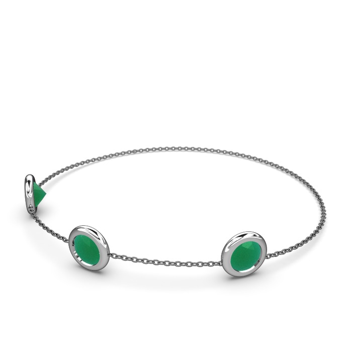 Kök zümrüt 8 ayar beyaz altın bilezik (40 cm gümüş rolo zincir)