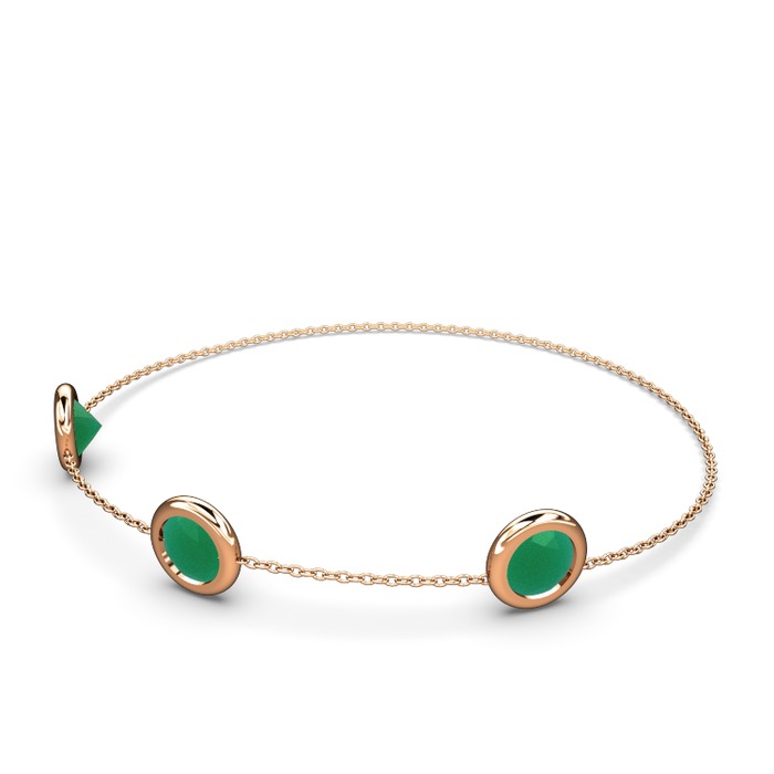 Kök zümrüt 925 ayar rose altın kaplama gümüş bilezik (40 cm rose altın rolo zincir)