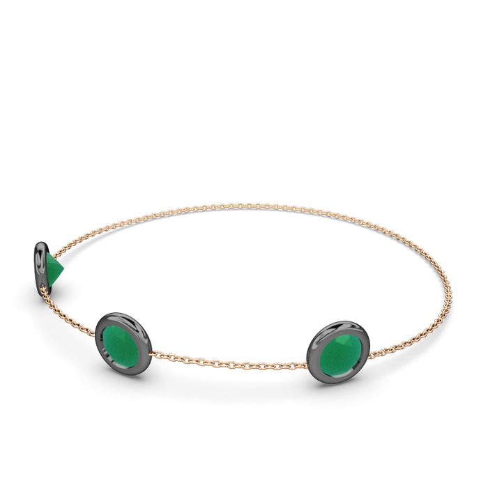 Kök zümrüt 925 ayar siyah rodyum kaplama gümüş bilezik (40 cm rose altın rolo zincir)