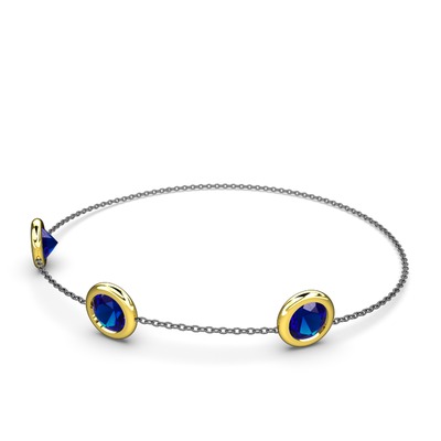 Lab safir 14 ayar altın bilezik (40 cm gümüş rolo zincir)
