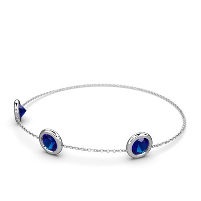 Lab safir 14 ayar beyaz altın bilezik (40 cm beyaz altın rolo zincir)