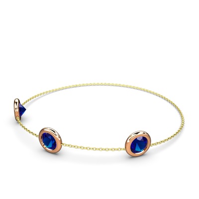 Lab safir 8 ayar rose altın bilezik (40 cm gümüş rolo zincir)