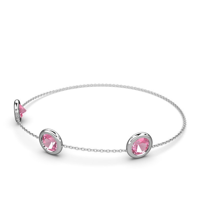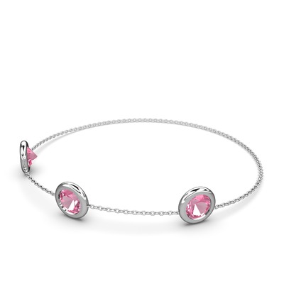 Pembe kuvars 14 ayar beyaz altın bilezik (40 cm beyaz altın rolo zincir)