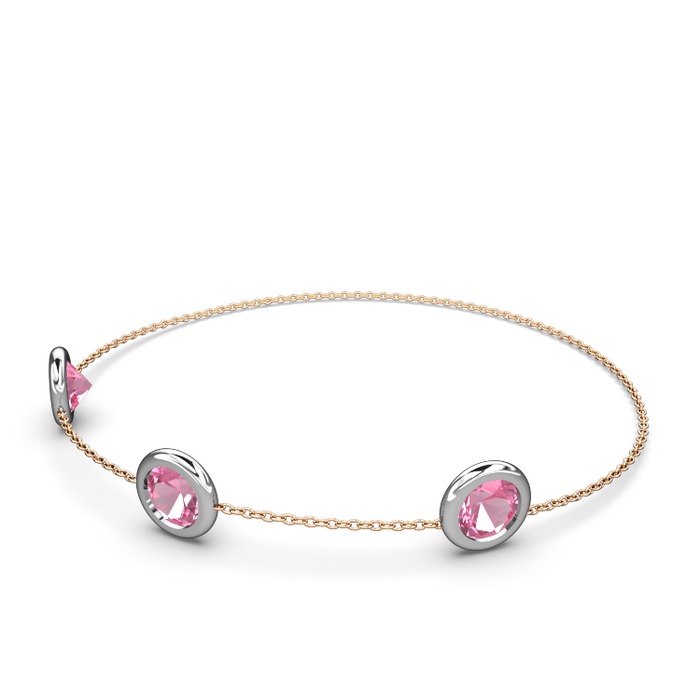 Pembe kuvars 18 ayar beyaz altın bilezik (40 cm gümüş rolo zincir)