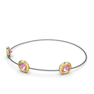 Pembe kuvars 8 ayar altın bilezik (40 cm gümüş rolo zincir)