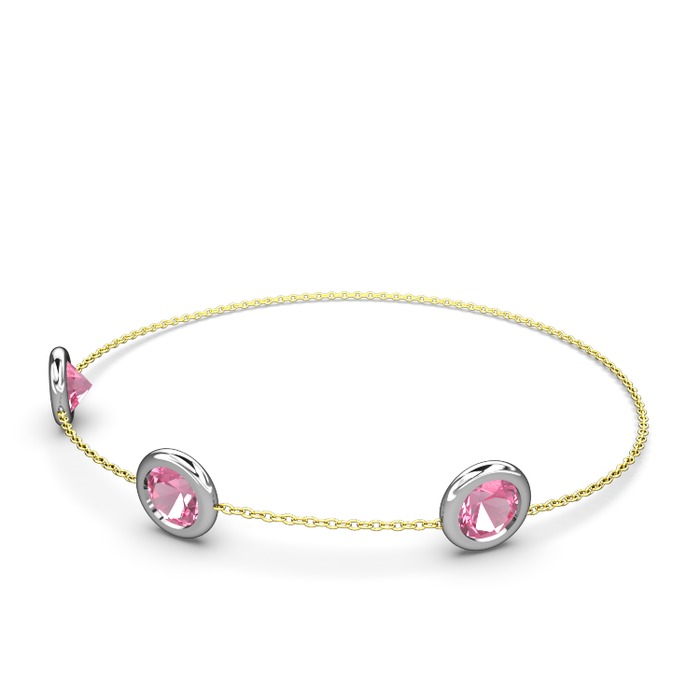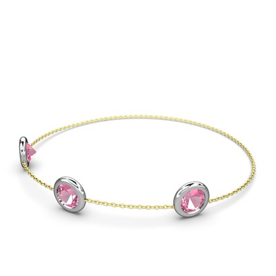 Pembe kuvars 925 ayar gümüş bilezik (40 cm altın rolo zincir)