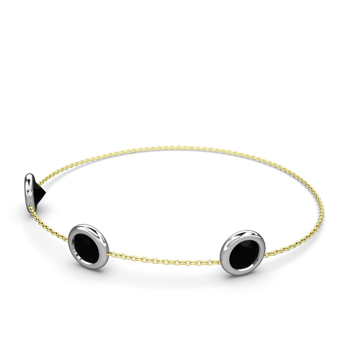 Siyah zirkon 14 ayar beyaz altın bilezik (40 cm altın rolo zincir)