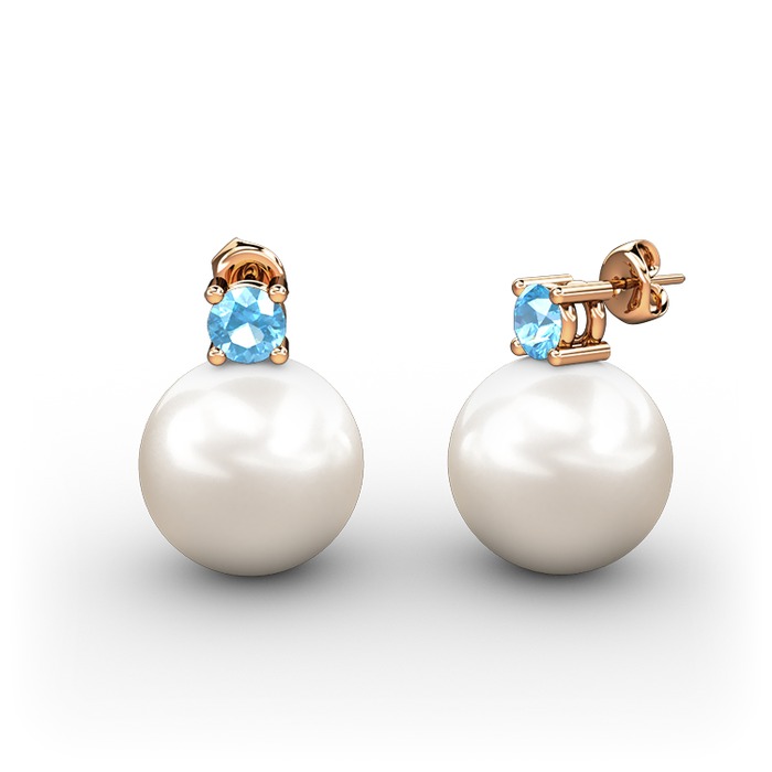 Inci ve akuamarin 18 ayar rose altın küpe