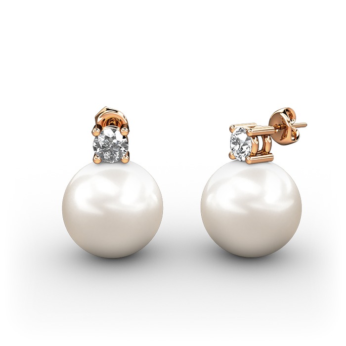 Inci ve beyaz zirkon 18 ayar rose altın küpe