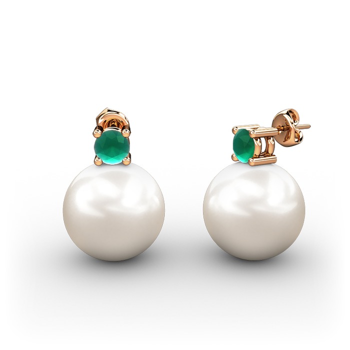 Inci ve kök zümrüt 18 ayar rose altın küpe