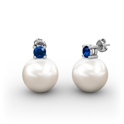 Inci ve lab safir 8 ayar beyaz altın küpe