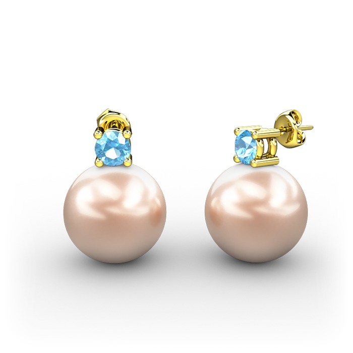 Pembe inci ve akuamarin 18 ayar altın küpe