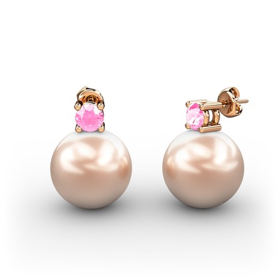 Pembe inci ve pembe kuvars 14 ayar rose altın küpe